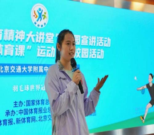 12月2日,“中华体育精神大讲堂”校园宣讲活动、“冠军体育课”运动员进校园活动走进北京交通大学附属中学,羽毛球世界冠军郑雨分享了自己在赛场上的拼搏故事,为大家上了一堂别开生面的体育课。