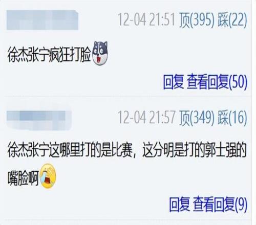晋粤大战不同于普通的常规赛或者俱乐部杯赛,双方都有高质量外援,并且由于两队过往的一些恩怨,最近两个赛季每每晋粤两队交手时双方总能碰撞出火花,比赛质量、对抗强度丝毫不逊于国家队大赛,因此昨晚徐杰和张宁交出的数据单足够有说服力,也再度征服了不少球迷,赛后有不少球迷喊出:徐杰和张宁这表现,分明是在打郭士强的脸啊。