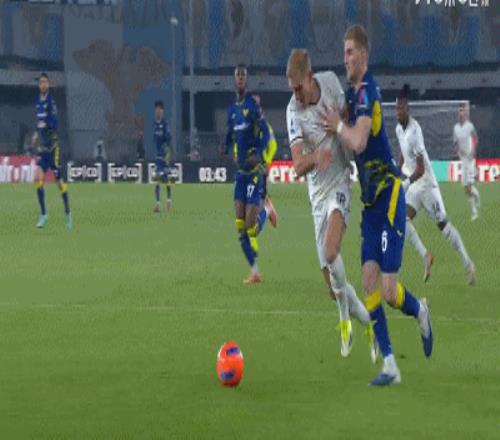 第19分钟,坎切列里倒地后踢倒奥尔班,裁判出示黄牌