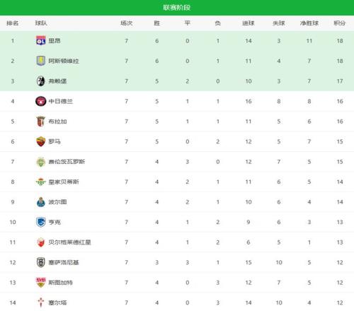 随着维拉10+罗马20!欧联杯最新积分榜:2队锁定16强,6队出局