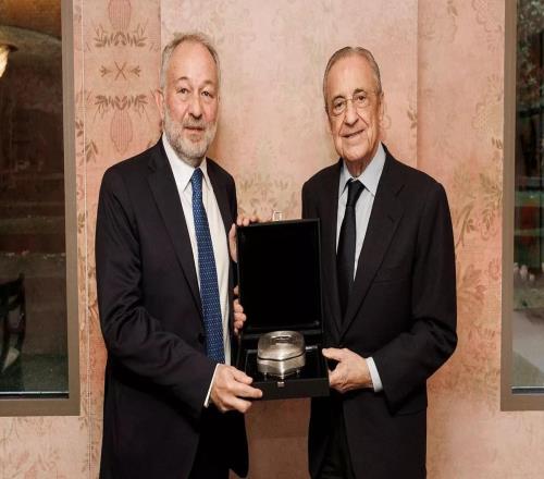 传统环节,弗洛伦蒂诺与尤文主席在欧冠赛前互赠礼物 -