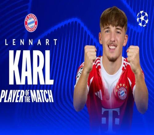 为球队首开记录!17岁卡尔当选拜仁vs布鲁日全场最佳球员 -